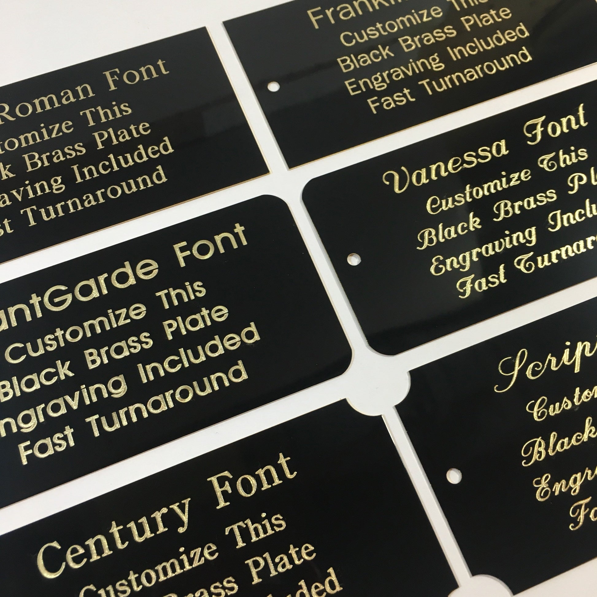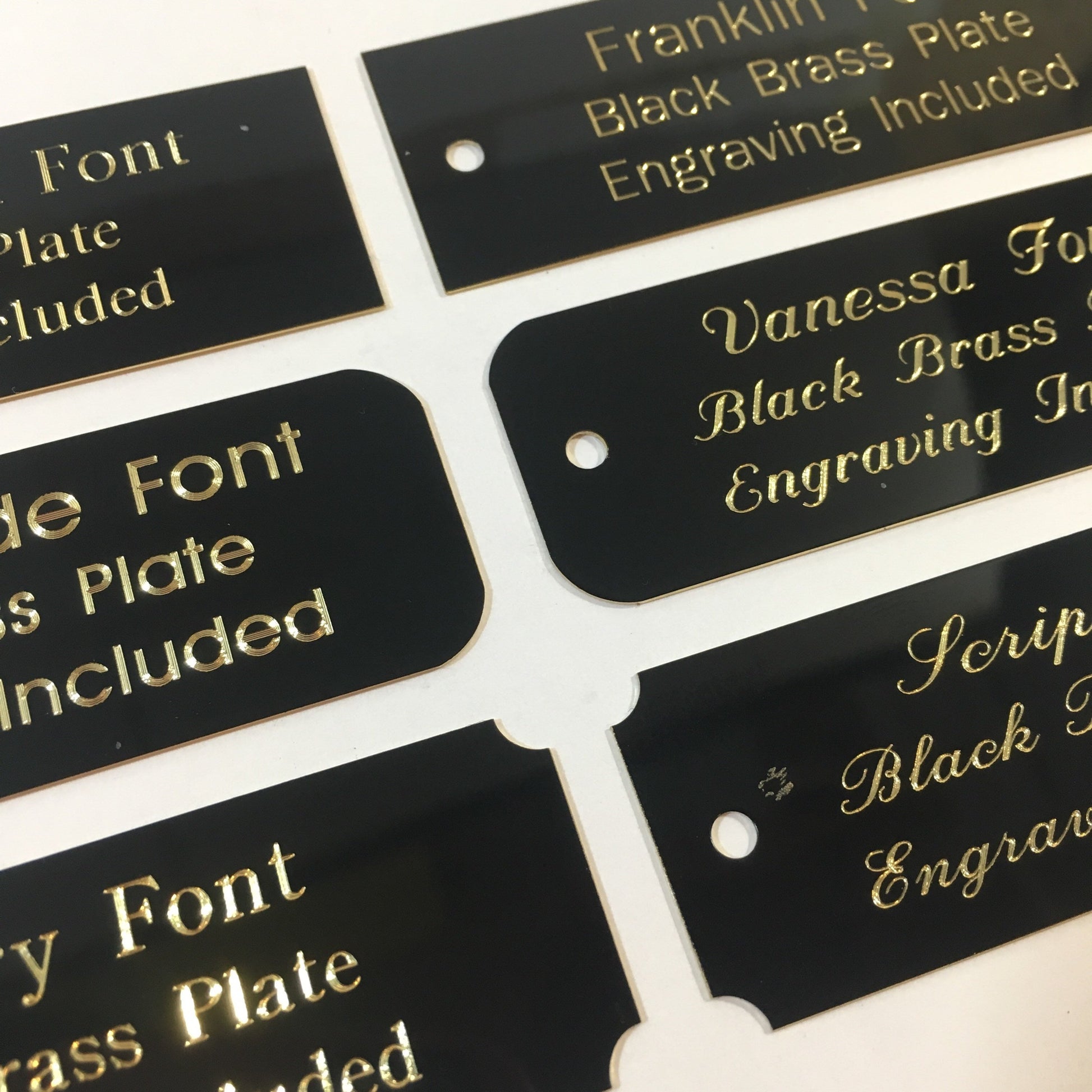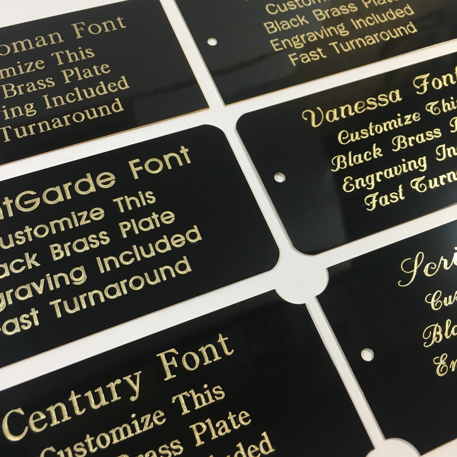 1"x3" Engraved Solid Black Brass Plate Gold Etched Letters