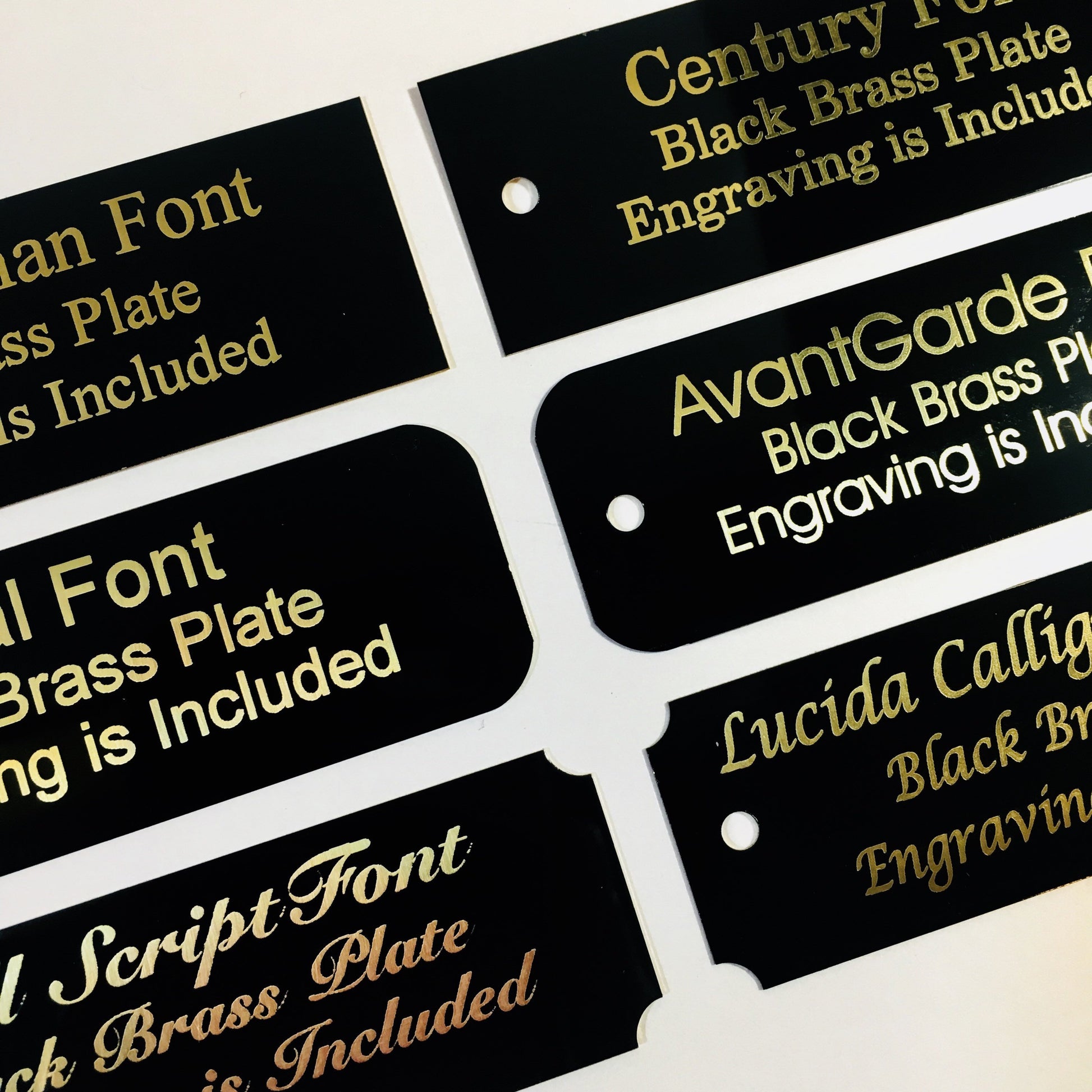 - 1" x 3" Laser Engraved Black Brass Plate with Gold Letters