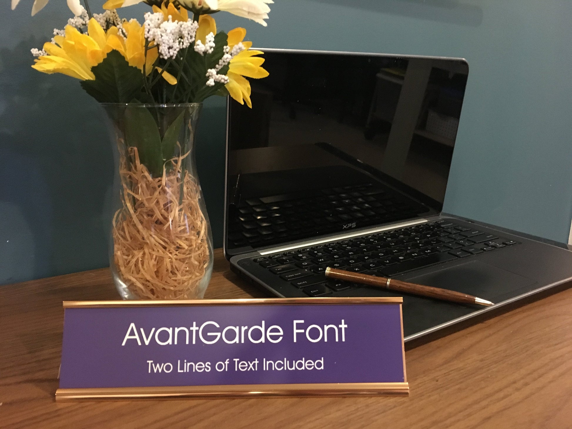 2" x 8" Desk Top Name Plate with Gold Holder - Laser Engraved
