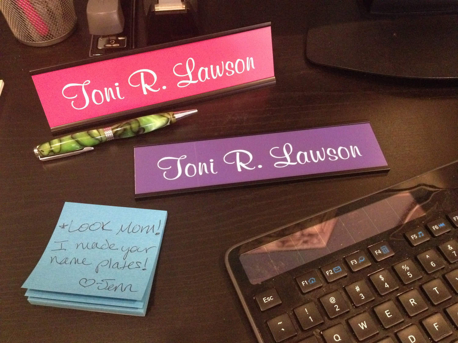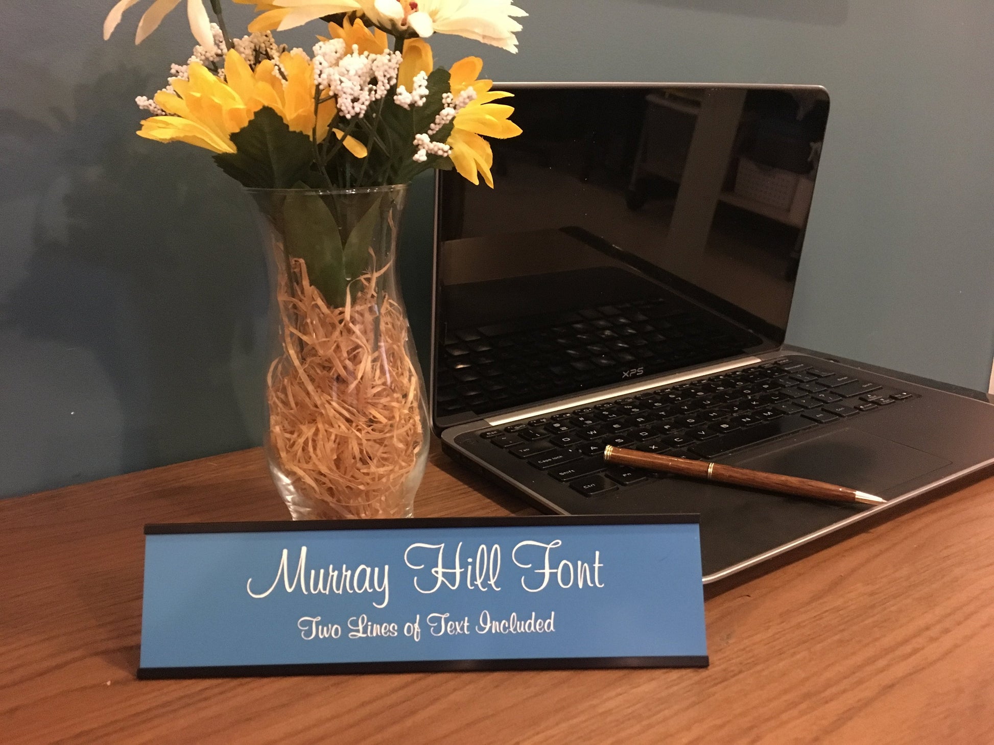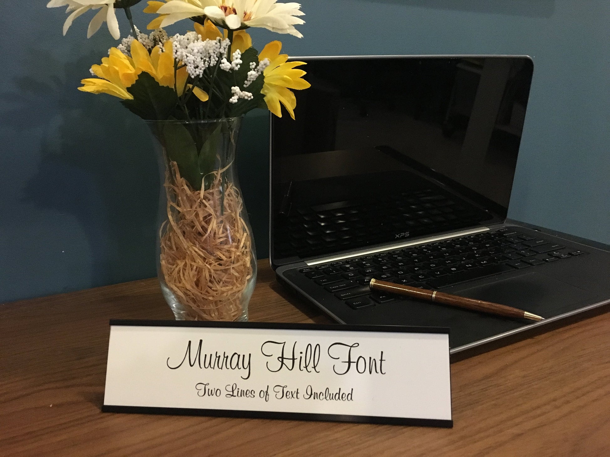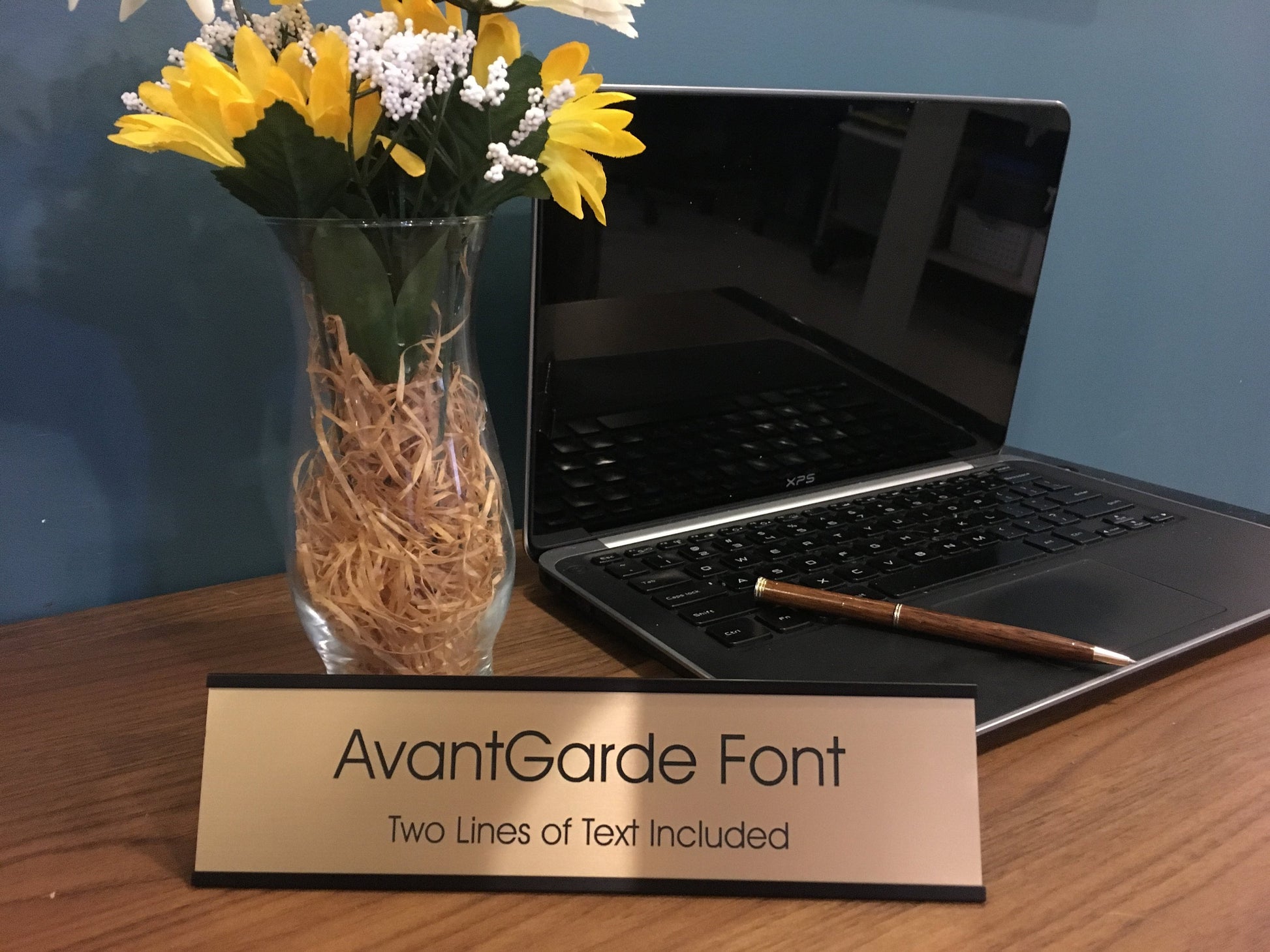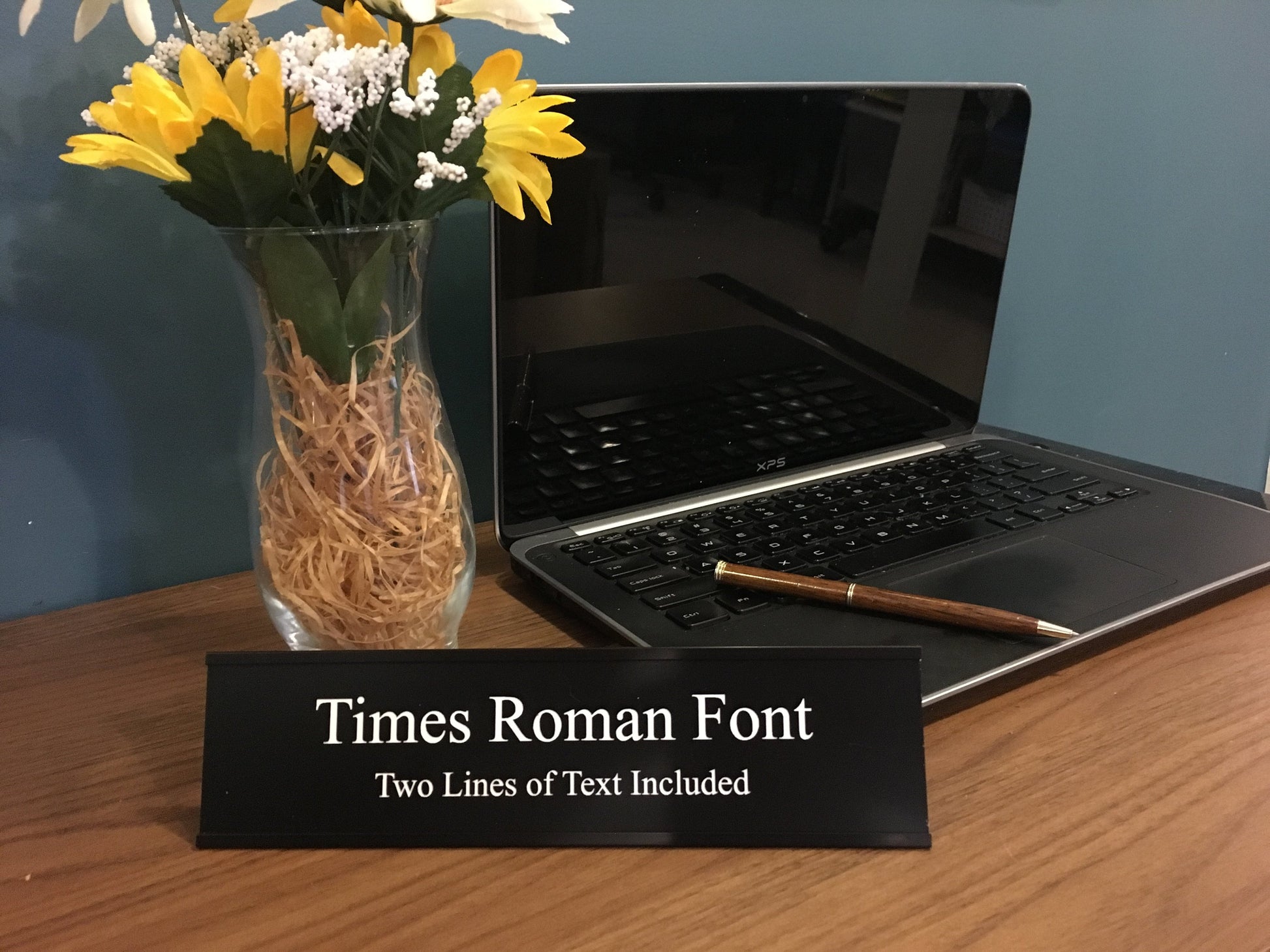 2" x 8" Desk Top Name Plate with Black Holder - Laser Engraved