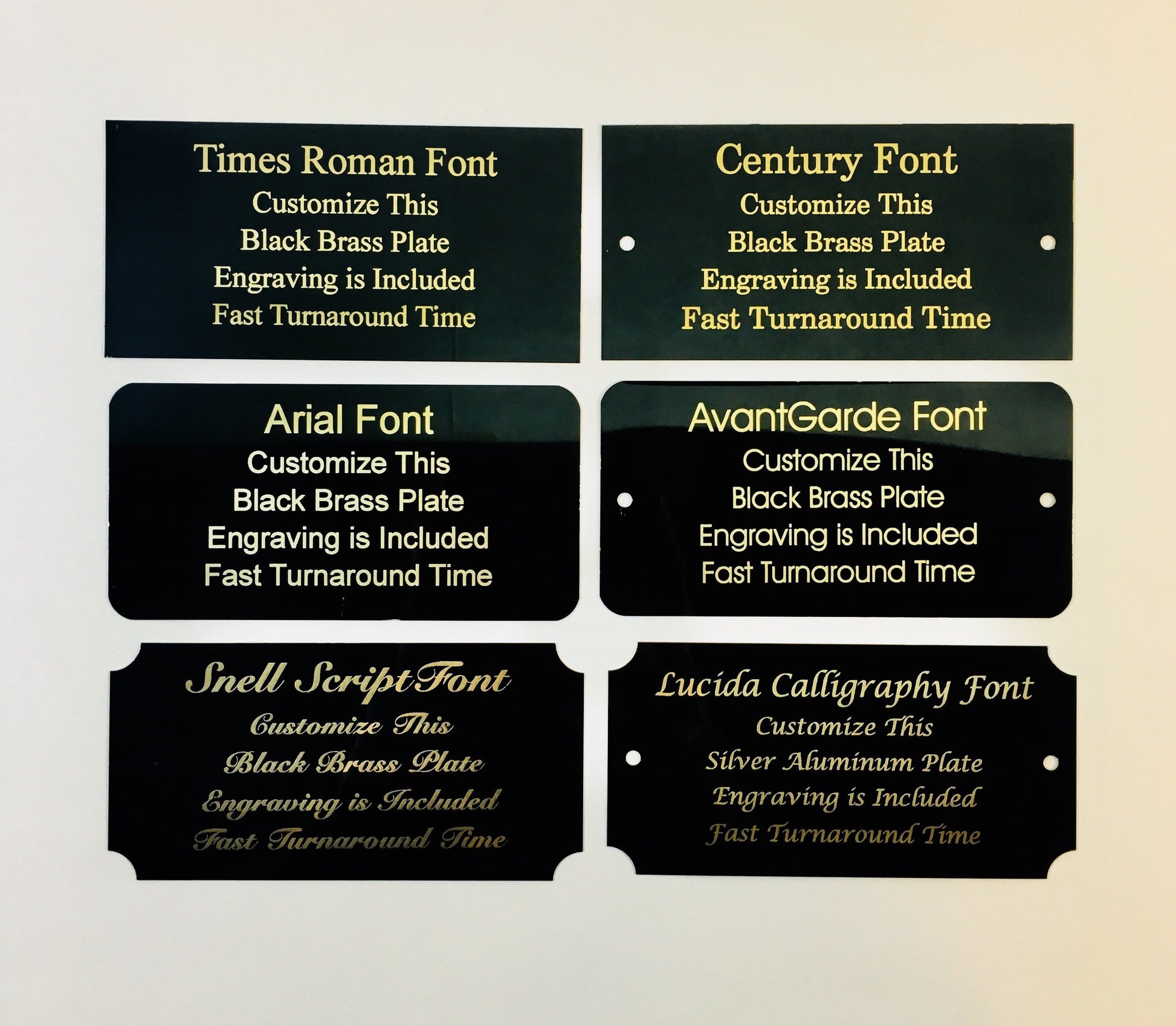 2" x 4" Laser Engraved Black Brass Plaque Gold Letters