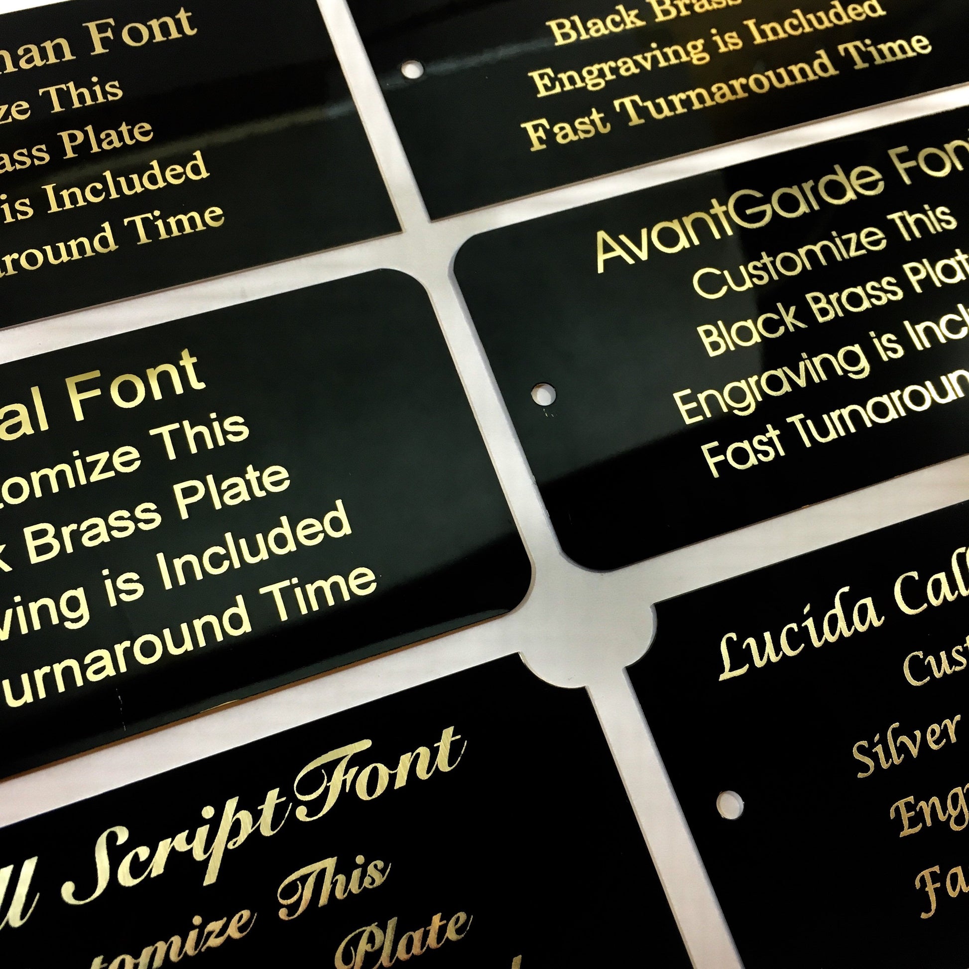 3" x 5" Laser Engraved Black Brass Plaque Gold Letters
