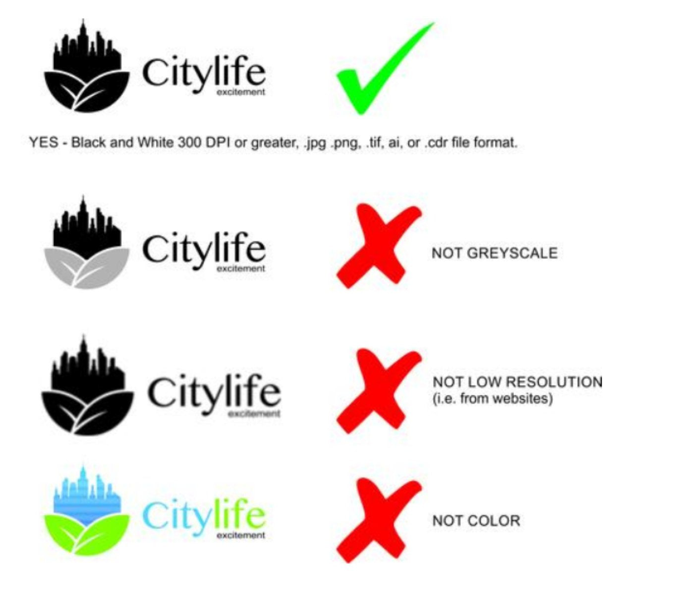 ARTWORK - Black and White logo with no Gray Scale or Color "See Image 3 for Example"